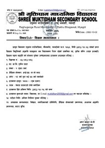 Teacher job vacancy announcement for Muktidham secondary school, Rakhu bhagawati, Myagdi . Form apply last date : 2082/10/16