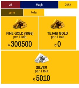 आज सुन चादी मुल्यमा वृद्धि भएको छ।