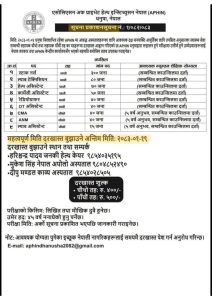 Staff nurse/ Lab techican /HA/ CMA/ANM job vacancy announcement for APHIN . Form apply last date : 2083 Baisak 19 -