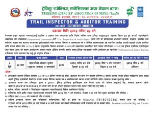 TAAN ,Trail inspector & auditor training का लागी दर्खास्त आह्वान सम्बन्धि सूचना !!!