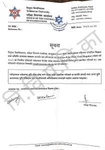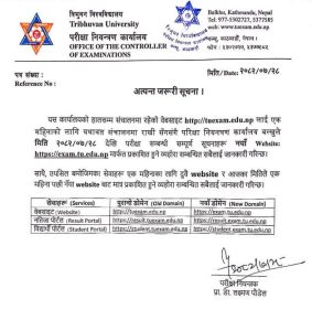 Notice for Tribhuvan university Office of the Controller of Examinations changes website .