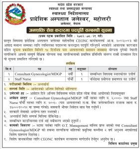 प्रादेशिक अस्पताल जलेश्वर करार सेवामा दर्खास्त आव्हान सम्बन्धि सूचना !!!