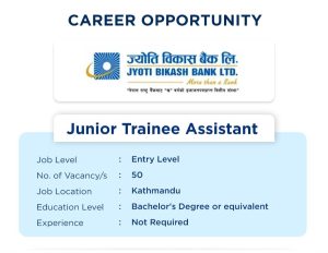 Junior trainee assistant job vacancy for Jyoti Bikash Bank LTD.