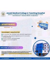 Staff Nurse job vacancy for Janaki Medical & teaching hospital . Form apply last 2026 feb 20. -