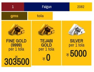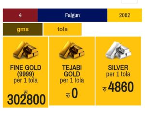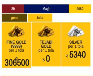 Gold & silver price rate today. Date 2082/10/28